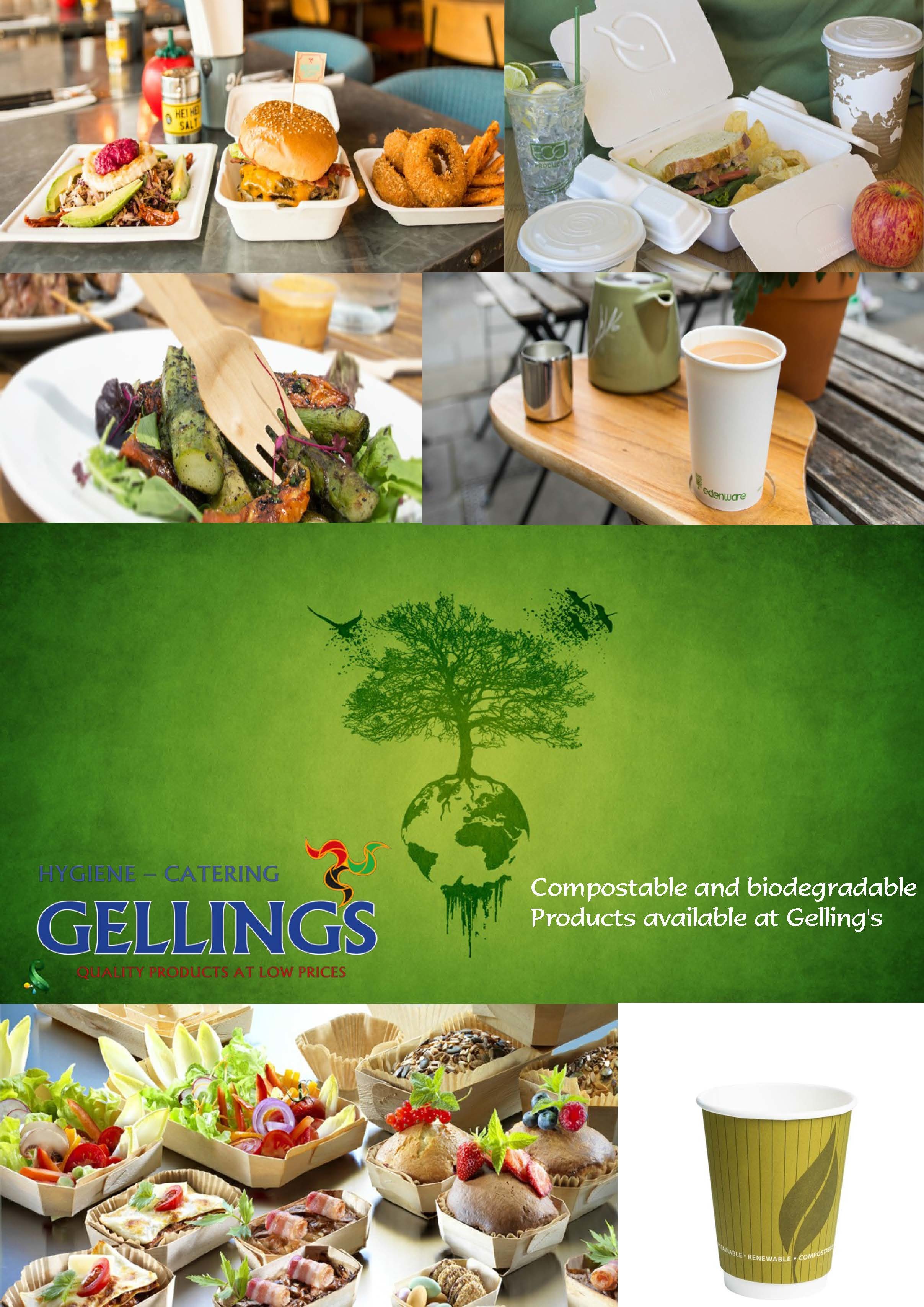 The Enviro range of compostable packaging includes: cutlery, dinnerware, cups, platters, pots and other catering products and disposables. Once used, this range of compostable and biodegradable packaging can be disposed of along with food waste, in commercial composting facilities.