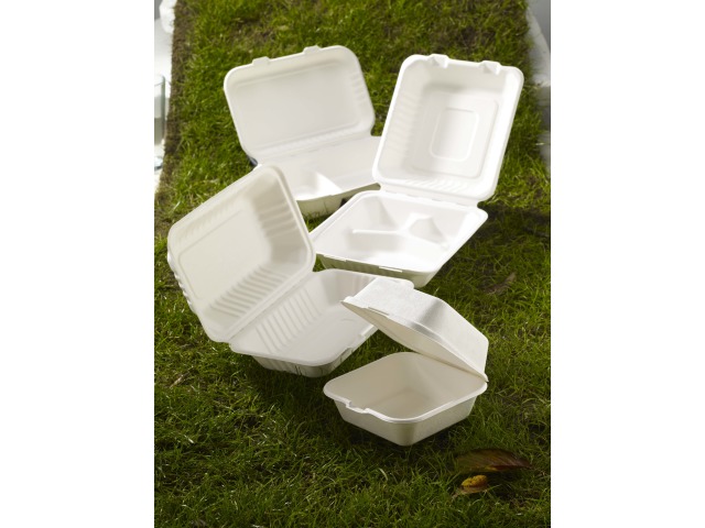 Containers are Disposable, Compostable & Biodegradable, manufactured from 100% sugarcane fibre. Suitable for hot, wet and oily foods.