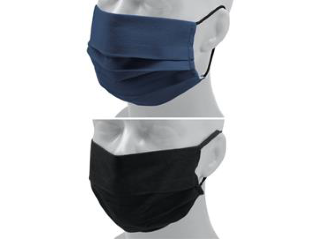 These 2-layer pleated face masks are made 100% out of water repellent polyester (both outer and inner layers). Polyester is a synthetic textile, which is smooth, light, yet strong.