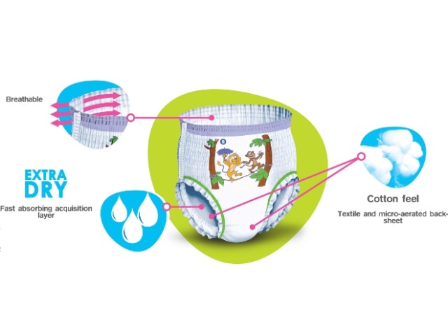 Freelife Pants are specially designed for active toddlers. The pants have all the advantages of a nappy, are quickly changed and give your toddler the comfort and autonomy he/she needs. Thanks to the elastified cotton feel material at the waist and at the legs, your toddler can go anywhere in comfort. Available in sizes 4 to 6.