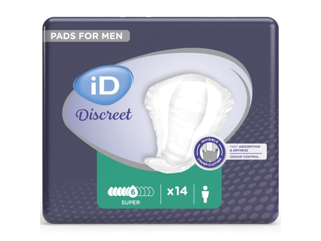 ID for Men are an individually wrapped pads ideal for managing light to moderate urinary incontinence in men. The male-specific design enhances comfort and security.The elastic gathers ensure a secure fit and the adhesive strip secures the guard inside the user’s own underwear.