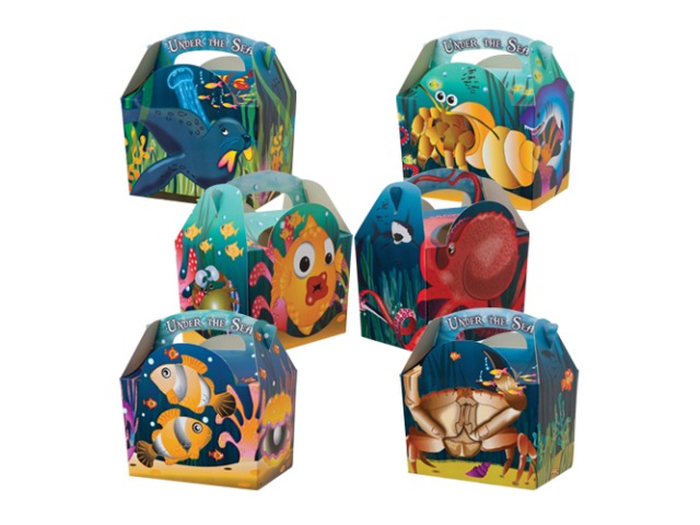 Suitable for fast food and snacks; also as a gift, party or activity box Multi-purpose disposable packaging Recyclable, compostable (EN13432) and FSC® certificed paperboard