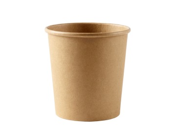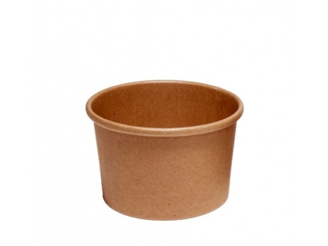 Kraft heavy-duty paper food containers manufactured from extra insulating 350gsm double poly coated paperboard.