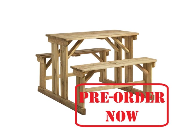 Manufactured from solid Spruce wood, pressure treated with a high quality wood preserver to ensure maximum durability. Also available in a 8-seater version. Perfect for pub, restaurant and bistro gardens.