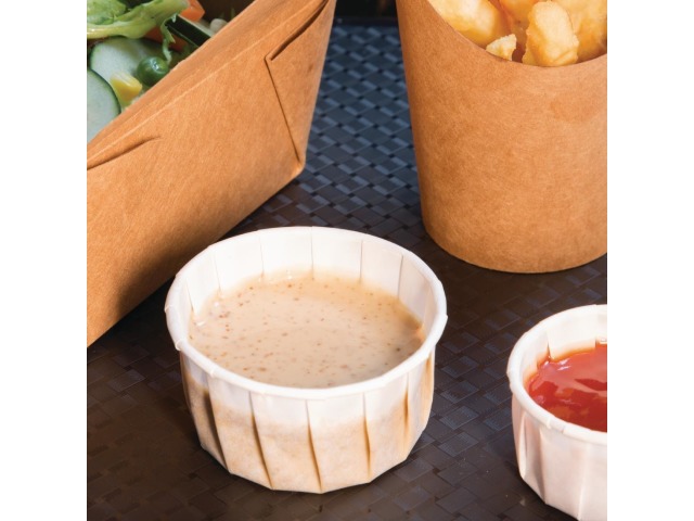The waxed paper material also means these pots can hold sauces for lengthy periods without leaking, giving customers more than enough time to enjoy their meals.