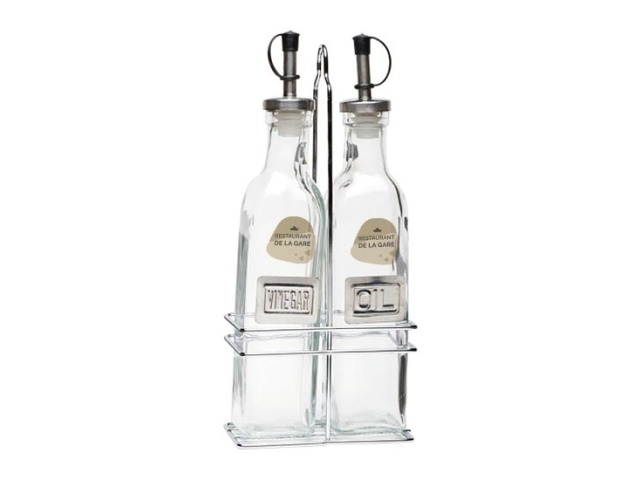 Square Glass Oil & Vinegar With Chrome Stand