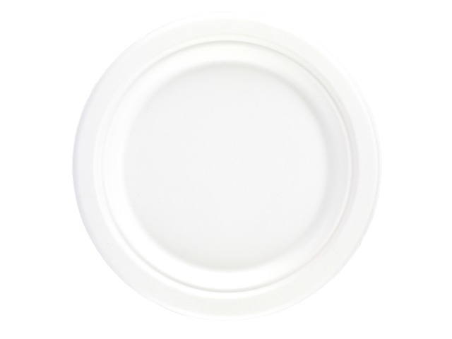 10" Bagasse round plates. Plates are Disposable, Compostable & Biodegradable, manufactured from 100% sugarcane fibre. Suitable for hot, wet and oily foods.