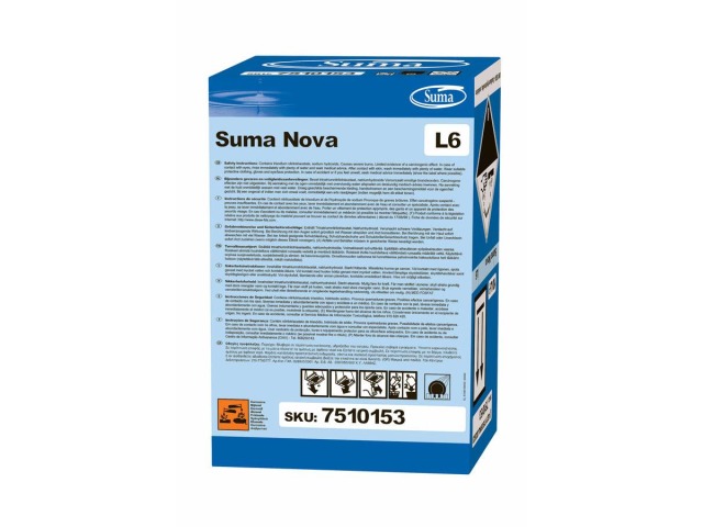 Suma Nova L6 is a concentrated liquid mechanical ware washing detergent specially formulated to provide excellent soil removal in hard water conditions. Suma Nova L6 is a heavy duty alkaline liquid detergent which is suitable for use in a wide range of single and multi-tank ware washing machines. This dishwashing detergent contains a blend of caustic alkali and scale control agents, which will provide excellent soil removal. The high level of powerful scale control agents in Suma Nova L6 will also prevent scaling in hard water conditions. This liquid mechanical warewashing detergent for hard water cuts through grease and dried-on food. Highly concentrated formulation gives greater economy in use and prevents scaling of the dish wash machine even in hard water conditions.