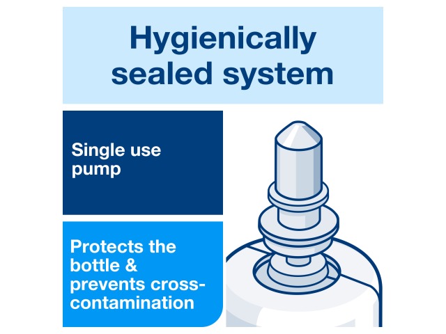 Hygienic: Sealed refill with single use pump reduces risk of cross contamination; Certified effortless maintenance and intuitive refilling in less than 10 seconds Reduced waste - Bottle collapses as contents are used