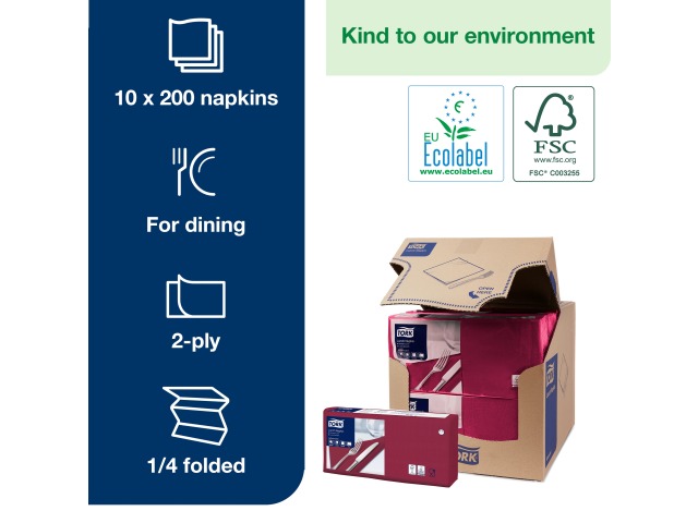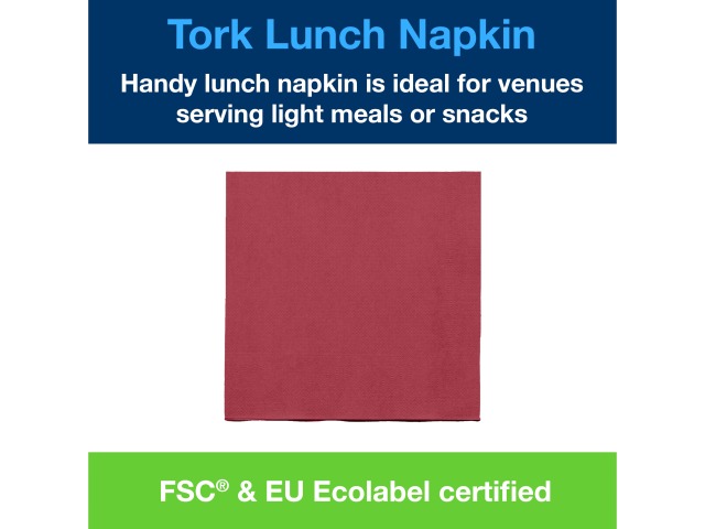 Tork Lunch Napkins are ideal in environments where light meals or snacks are served. They come in a wide range of modern and classic colours to match your restaurant décor.