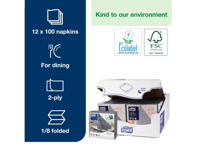 Tork Premium LinStyle® Napkins support full-service restaurants, where quality is especially importent to impress your guests. With the look and feel like real textile, each napkin is noticeably softer and bulkier than standard paper napkins, while being extra absorbant.