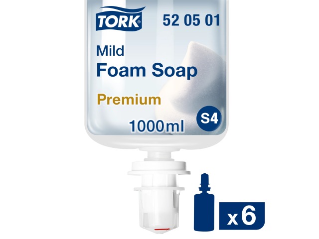 Tork Mild Foam Soap, Skin-friendly All-purpose Soap for S4 Dispenser Systems, Premium Quality, Fresh Fragrance, 1 × 1000 ml