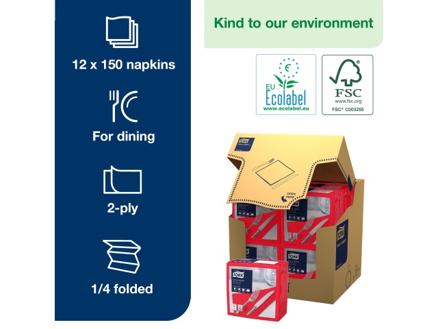 1/4 Fold 2-ply, 39 cm x 39 cm, 12 x 150 napkins