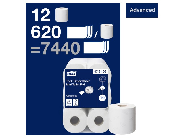 Tork SmartOne® Mini Toilet Roll White T9, Advanced, 2-Ply, 12 x 620 Sheets, 472193