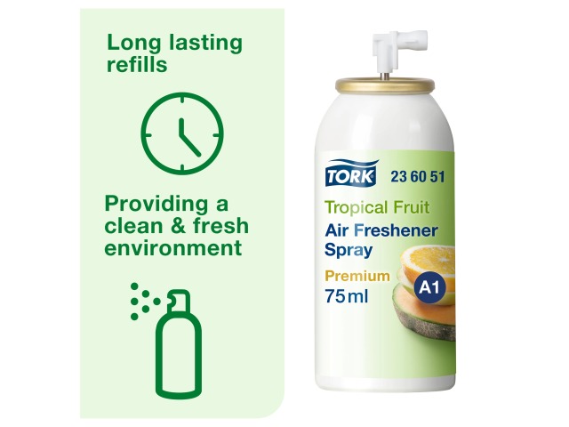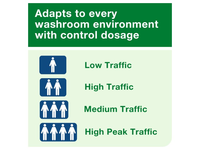 Tailor this air freshener to your washroom's needs, thanks to the compatible dispenser's flexible settings.