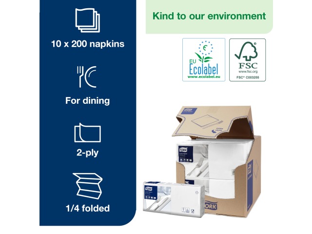 1/4 Fold 2-ply, 33 cm x 33 cm, 10 x 200 napkins,