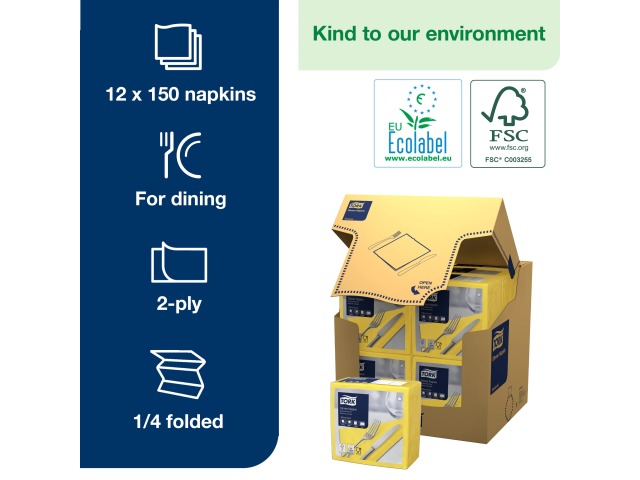 1/4 Fold 2-ply, 39 cm x 39 cm, 12 x 150 napkins