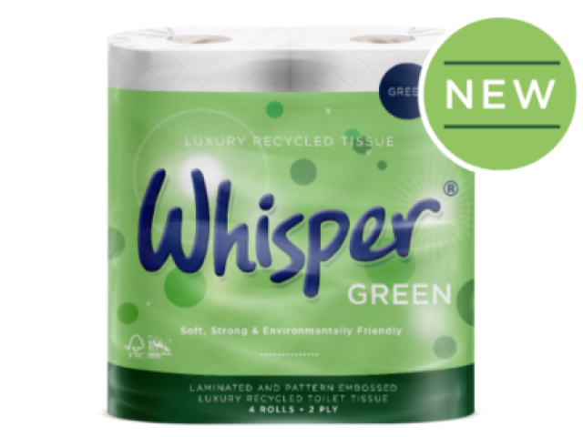Whisper Silver sets the standard for excellence with its laminated and micro-embossed design, ensuring an unmatched combination of softness and strength. It delivers a premium experience for end users, providing a high-quality and reliable toilet tissue that consistently meets their expectations. With Whisper Green, you can enjoy a truly luxurious and environmentally conscious choice for your daily needs.